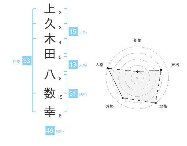 上久木田 八数幸さんを姓名の画数から五運を鑑定