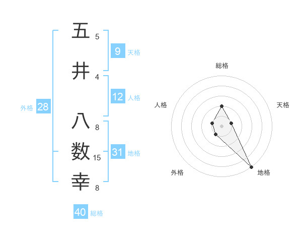 五井 八数幸さんを姓名の画数から五運を鑑定