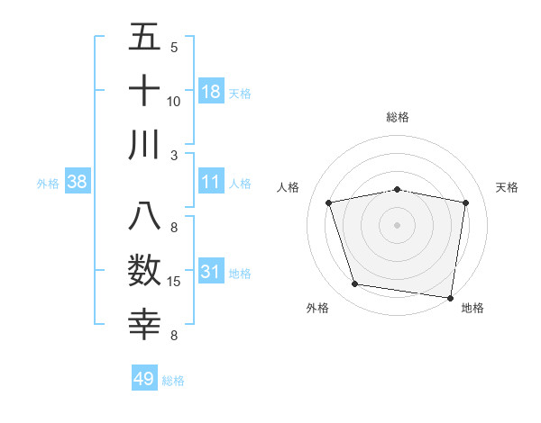 五十川 八数幸さんを姓名の画数から五運を鑑定