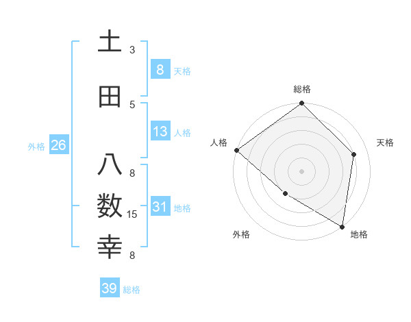 土田 八数幸さんを姓名の画数から五運を鑑定
