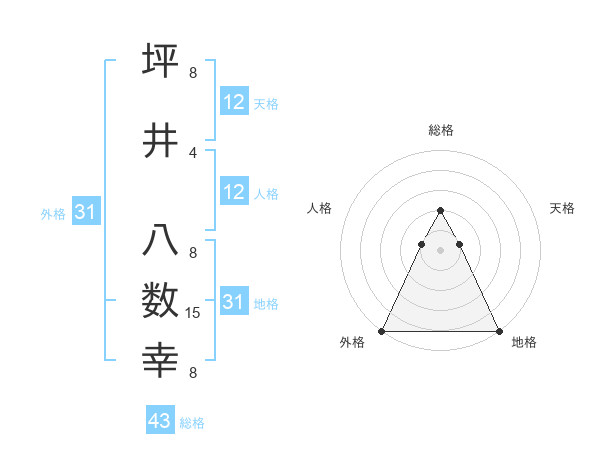 坪井 八数幸さんを姓名の画数から五運を鑑定