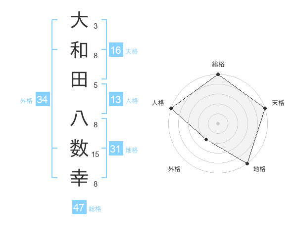 大和田 八数幸さんを姓名の画数から五運を鑑定