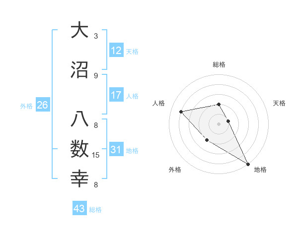 大沼 八数幸さんを姓名の画数から五運を鑑定