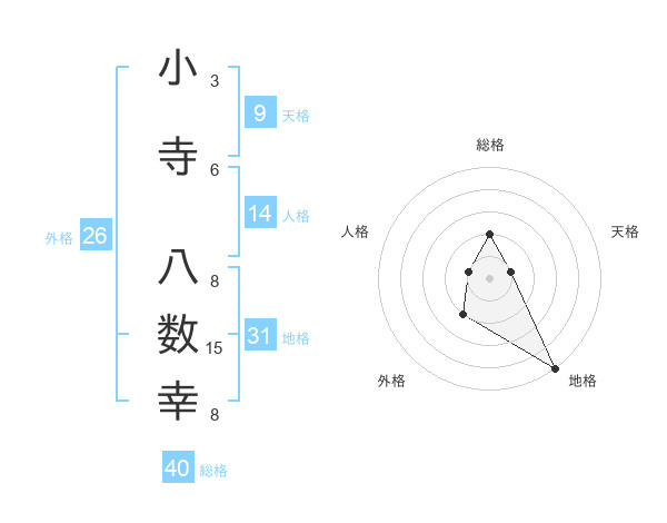 小寺 八数幸さんを姓名の画数から五運を鑑定