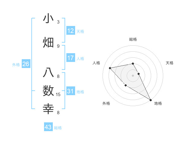 小畑 八数幸さんを姓名の画数から五運を鑑定