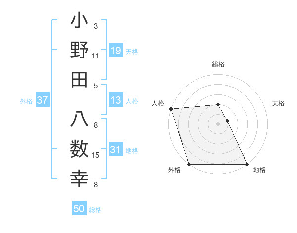 小野田 八数幸さんを姓名の画数から五運を鑑定