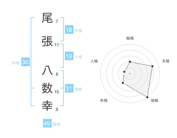 尾張 八数幸さんを姓名の画数から五運を鑑定