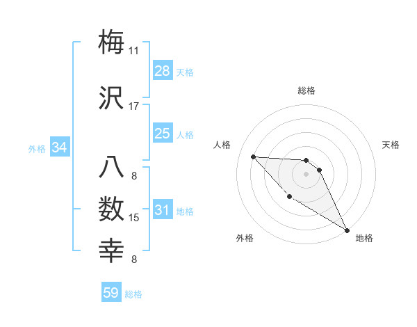 梅沢 八数幸さんを姓名の画数から五運を鑑定