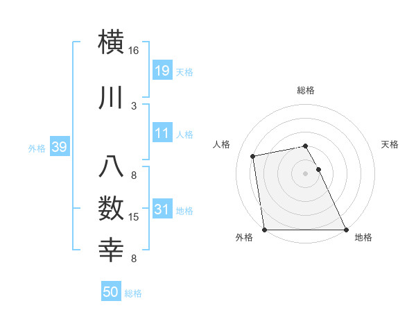 横川 八数幸さんの総格は50画の2点!
