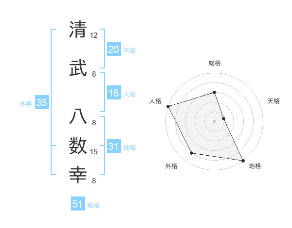 清武 八数幸さんを姓名の画数から五運を鑑定