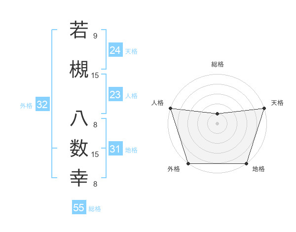 若槻 八数幸さんを姓名の画数から五運を鑑定