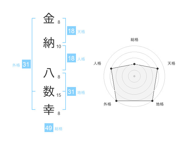 金納 八数幸さんの外格は31画の5点!