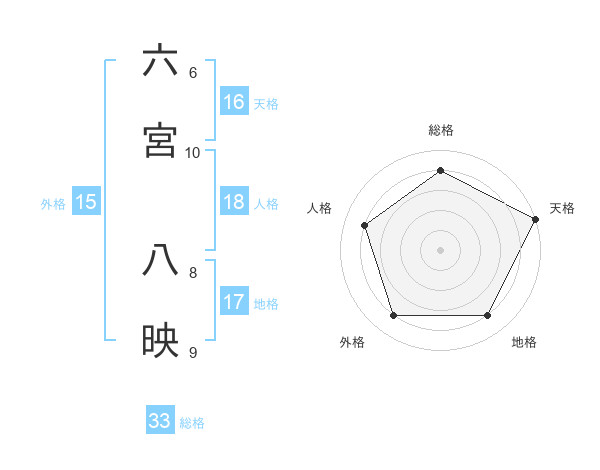 六宮 八映さんの外格は15画の4点!