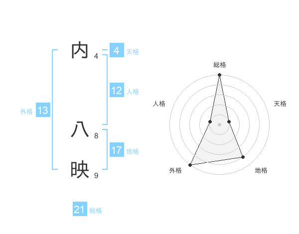 内 八映さんの総格は21画の5点!