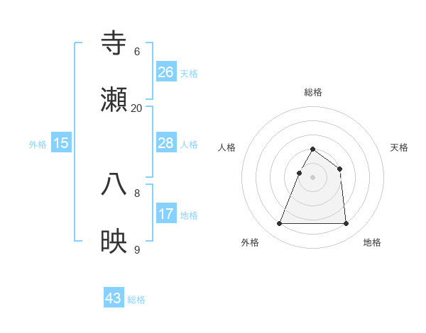 寺瀬 八映さんの総格は43画の2点!