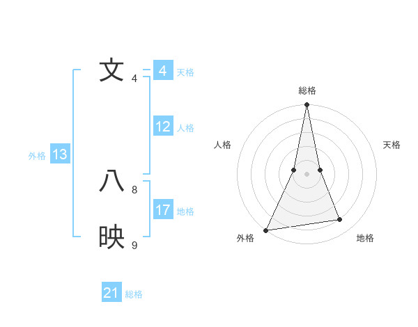 文 八映さんの総格は21画の5点!
