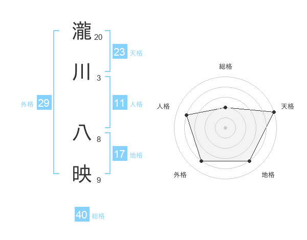 瀧川 八映さんを姓名の画数から五運を鑑定