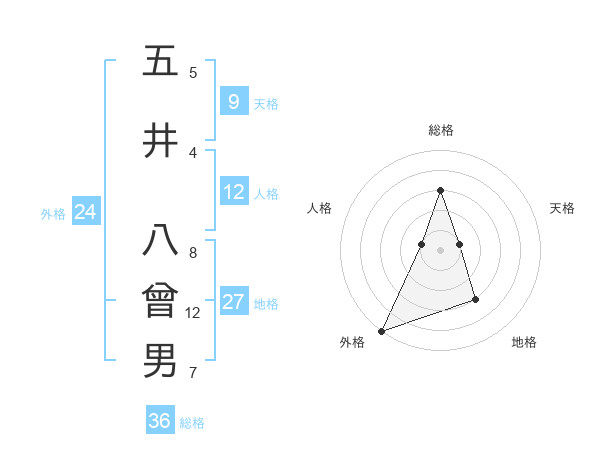 五井 八曾男さんを姓名の画数から五運を鑑定