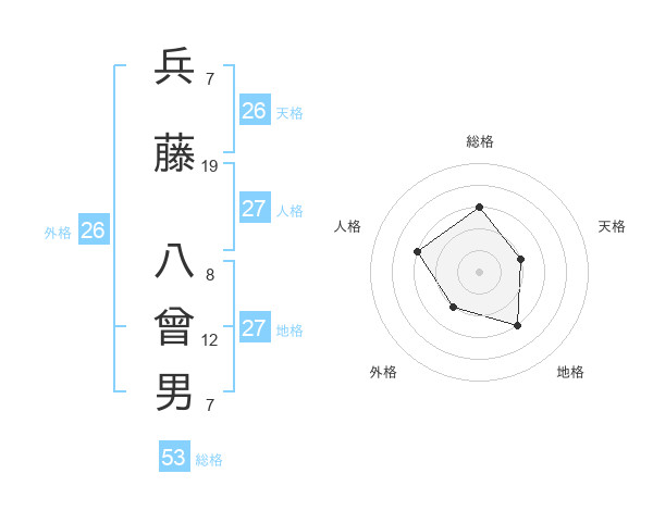 兵藤 八曾男さんを姓名の画数から五運を鑑定