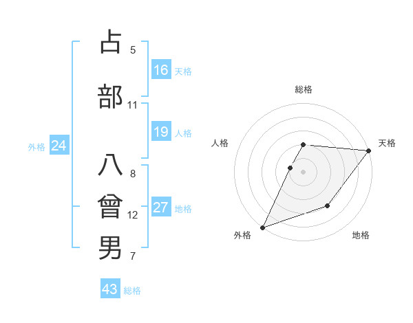 占部 八曾男さんを姓名の画数から五運を鑑定