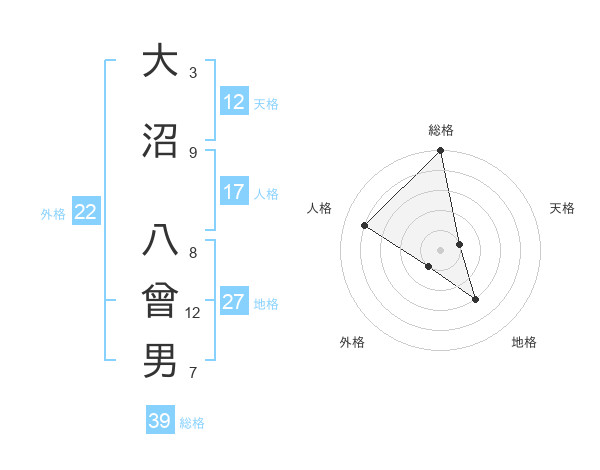 大沼 八曾男さんを姓名の画数から五運を鑑定