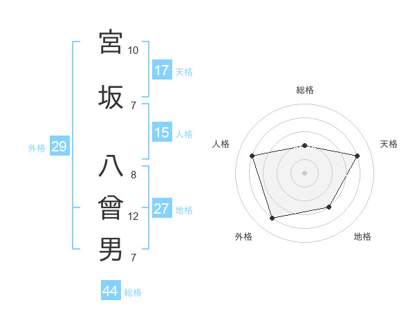 宮坂 八曾男さんを姓名の画数から五運を鑑定