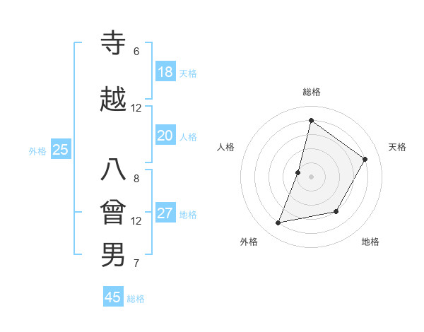 寺越 八曾男さんを姓名の画数から五運を鑑定