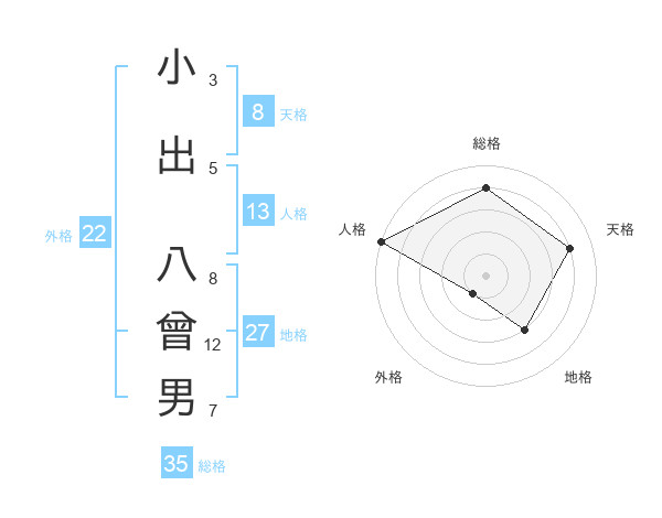 小出 八曾男さんを姓名の画数から五運を鑑定