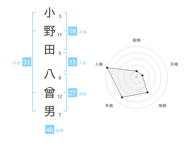 小野田 八曾男さんを姓名の画数から五運を鑑定