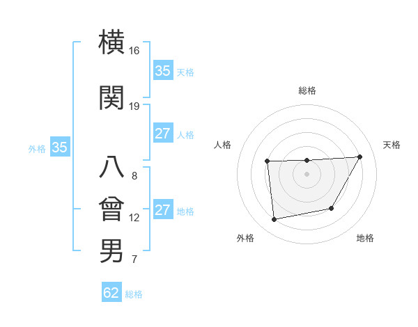横関 八曾男さんを姓名の画数から五運を鑑定