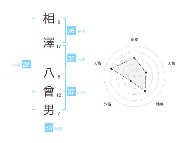 相澤 八曾男さんを姓名の画数から五運を鑑定