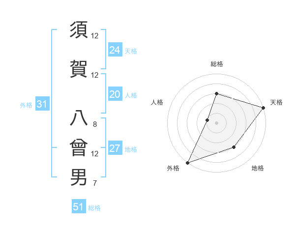 須賀 八曾男さんを姓名の画数から五運を鑑定
