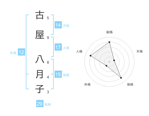 古屋 八月子さんを姓名の画数から五運を鑑定