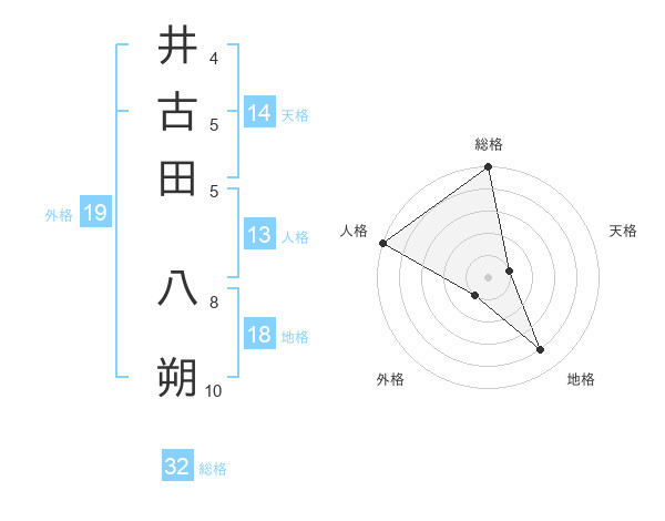井古田 八朔さんの総格は32画の5点!