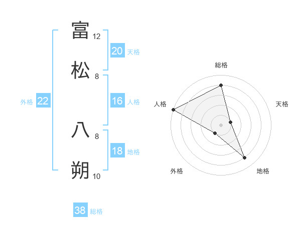 富松 八朔さんの総格は38画の4点!