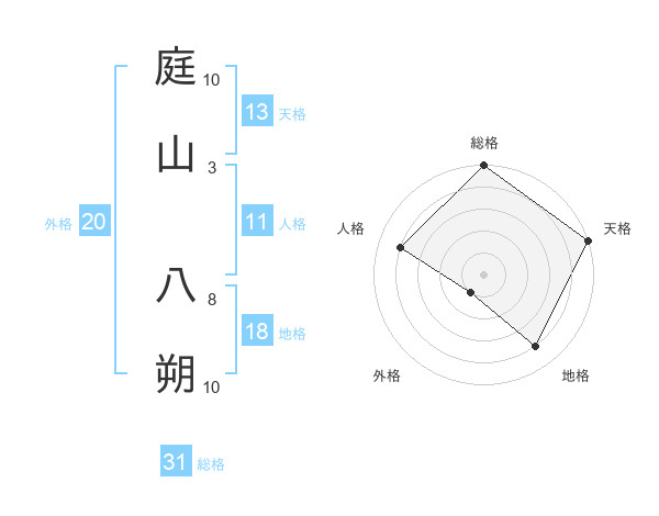 庭山 八朔さんを姓名の画数から五運を鑑定