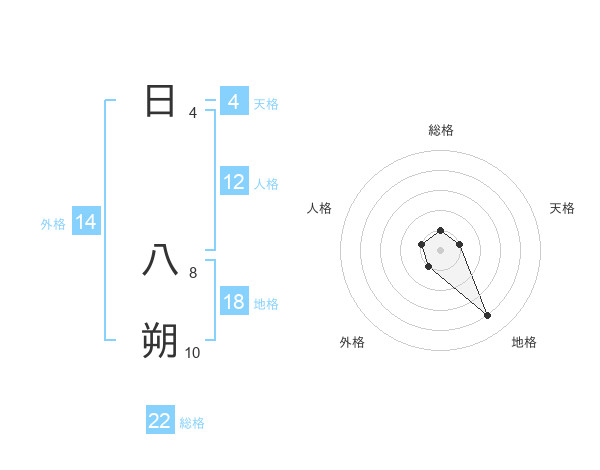 日 八朔さんの総格は22画の1点!