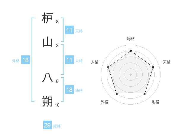 枦山 八朔さんを姓名の画数から五運を鑑定