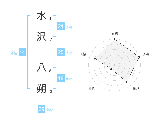水沢 八朔さんを姓名の画数から五運を鑑定
