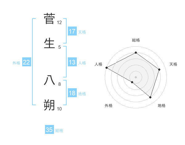 菅生 八朔さんの外格は22画の1点!