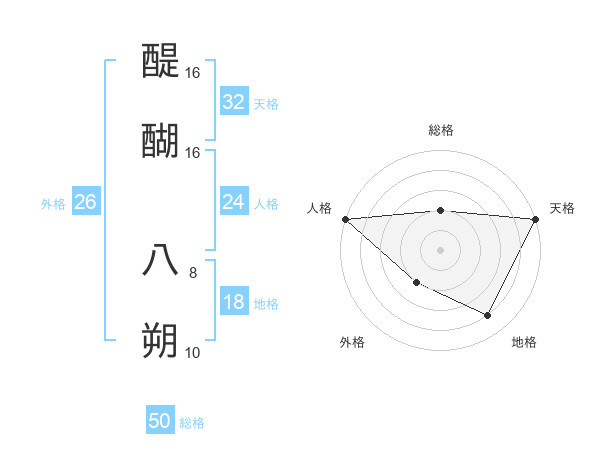 醍醐 八朔さんの総格は50画の2点!