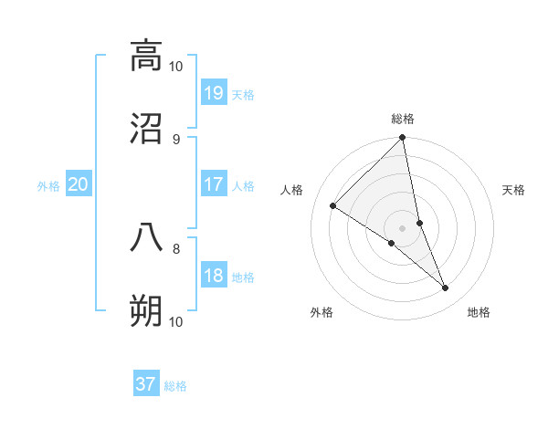 高沼 八朔さんを姓名の画数から五運を鑑定