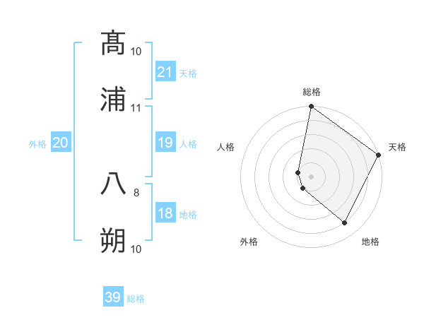 髙浦 八朔さんを姓名の画数から五運を鑑定