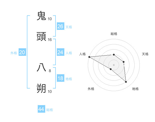鬼頭 八朔さんを姓名の画数から五運を鑑定