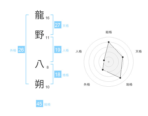 龍野 八朔さんを姓名の画数から五運を鑑定