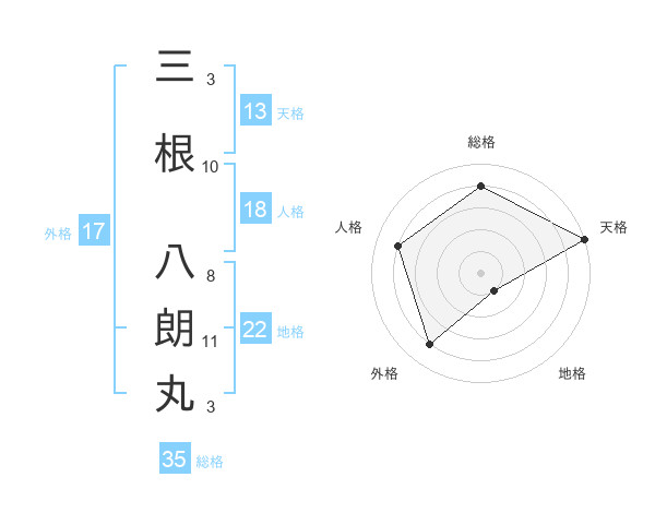 三根 八朗丸さんを姓名の画数から五運を鑑定