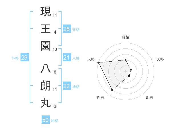 現王園 八朗丸さんの総格は50画の2点!