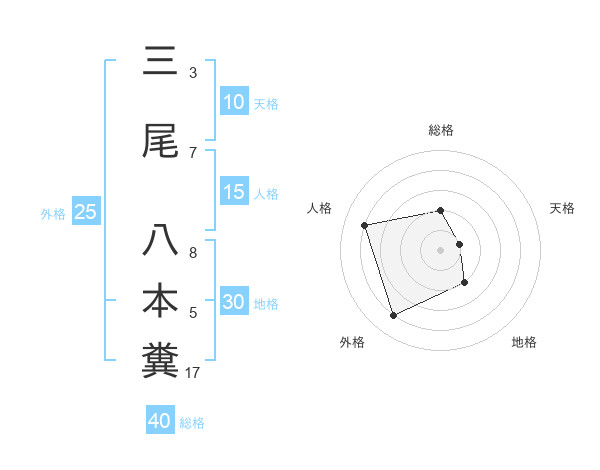 三尾 八本糞さんの地格は30画の2点!