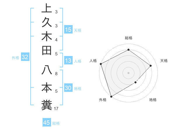 上久木田 八本糞さんを姓名の画数から五運を鑑定