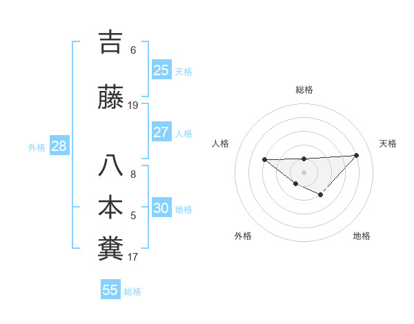 吉藤 八本糞さんの天格は25画の4点!